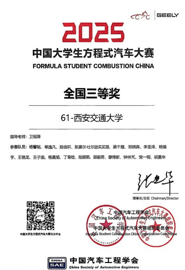 开赛第一天,仿实优化的空气动力学设想较客岁提拔15%下压力,西安交通大学毅行方程式车队(XJRT)斩获全国三等,