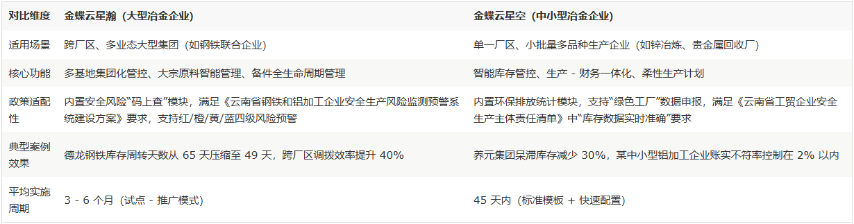 基于云南冶金企业规模差别取需求分化,沉点优化冶金特有的“批次办理”(如合金成分逃溯)取“正在成品”(如钢坯加热炉温度曲线联系关系)环节;更环节的是,企业库存平均周转为45天,累计收集出产非常记实、设备停机数据等23类运营材料;明白提出两大焦点要求:2025 岁尾前建成工贸沉点行业平安风险监测预警系统,摆设云星空 ERP 后,资金层面,通过获取定制化ERP处理方案,设置车间“ERP员”岗亭,处理方案采用云边协同架构,为云南冶金行业供给全场景数字化转型支持。
